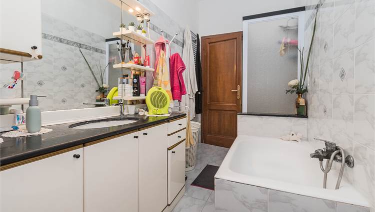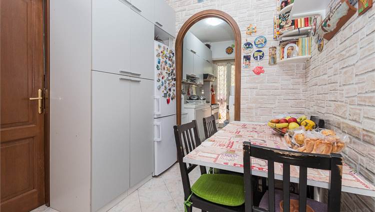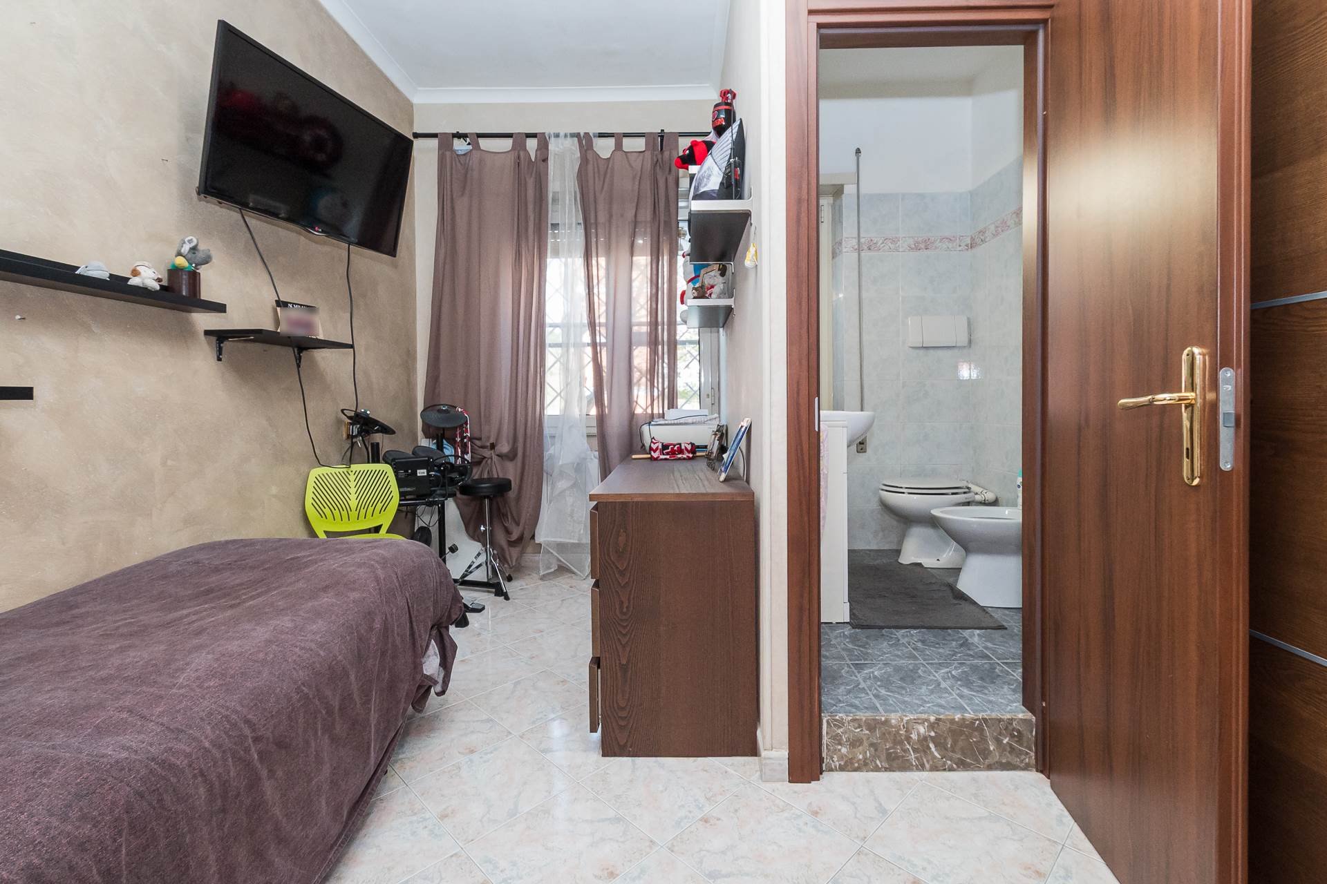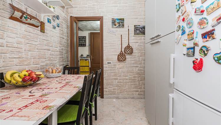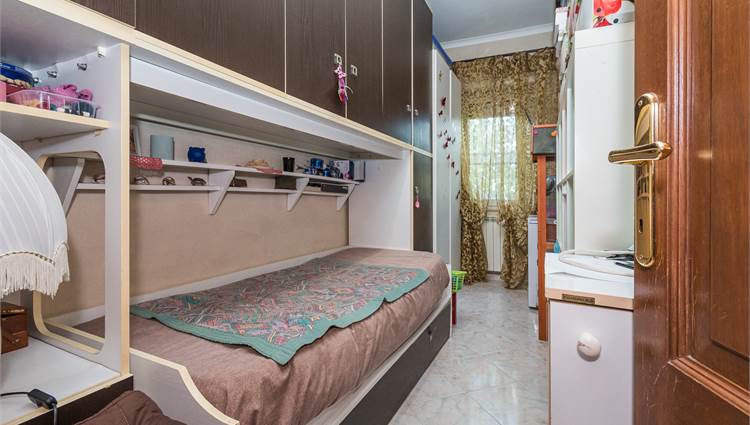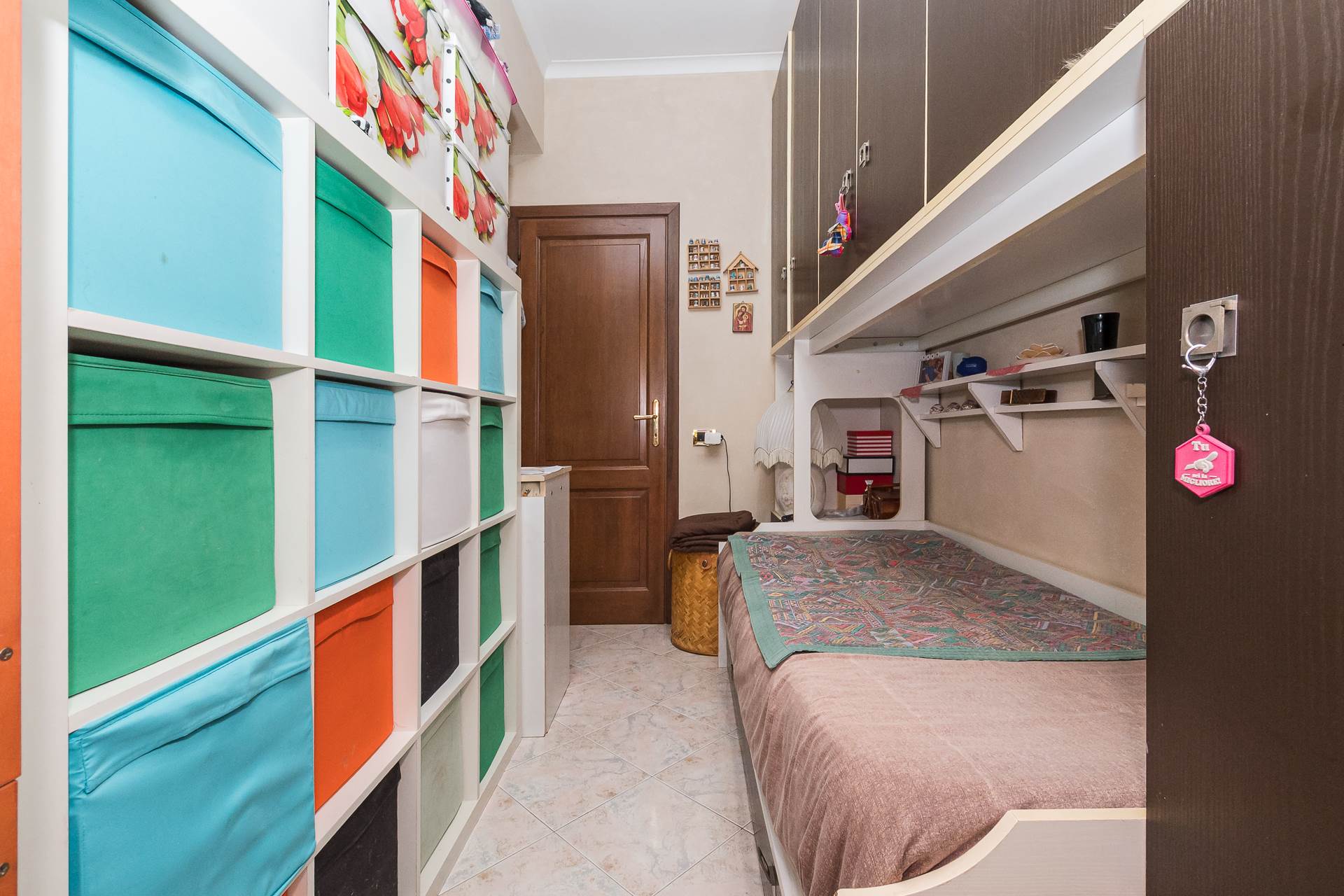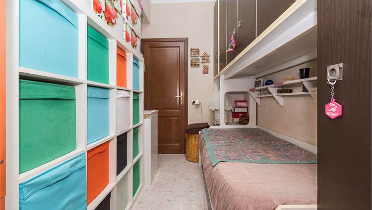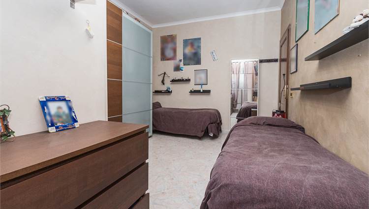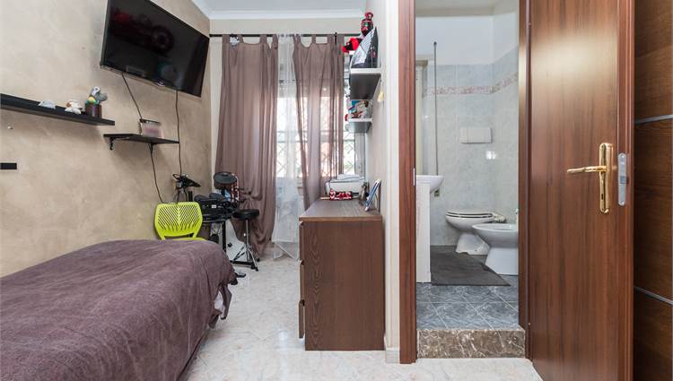 L’appartamento si sviluppa su un ampia metratura, così disposta: spazioso ingresso con armadio a muro, salone, sala da pranzo con cucina annessa, disimpegno con ripostiglio, camera padronale, camera da letto con bagno privato, cameretta e secondo bagno con finestra.