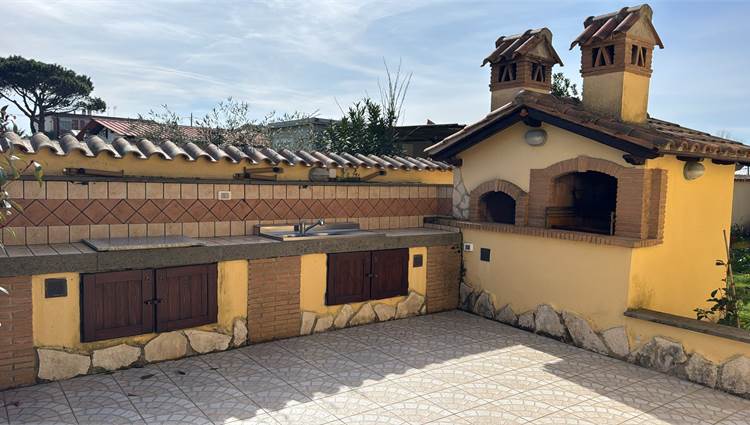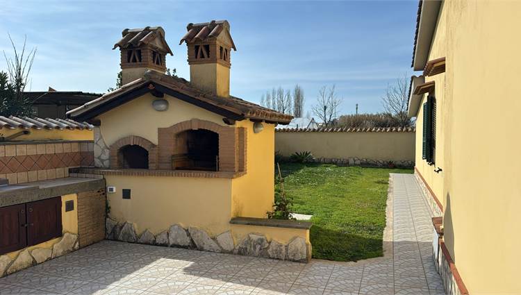 La villa si estende su un lotto di 560mq, ingresso indipendente dal cancello carrabile, dove troviamo spazio per un auto ed ampio spazio esterno di 450mq, con area barbecue, forno e gazebo.