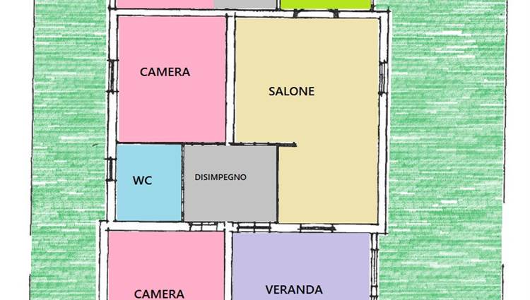 Internamente si sviluppa su’ampia metratura, composta da portico, salone doppio con camino e cucina a vista, spazioso disimpegno, tre camere matrimoniali e doppi servizi entrambi con finestra. Classe G.