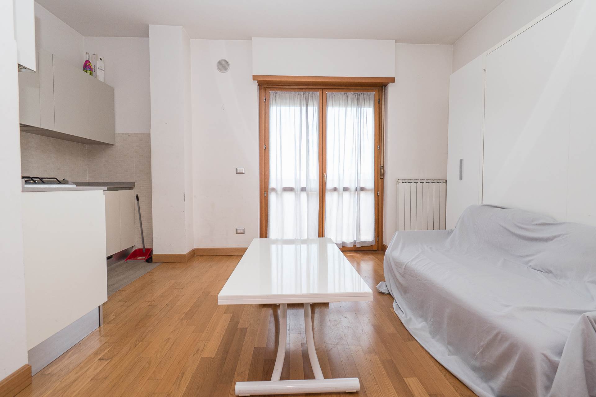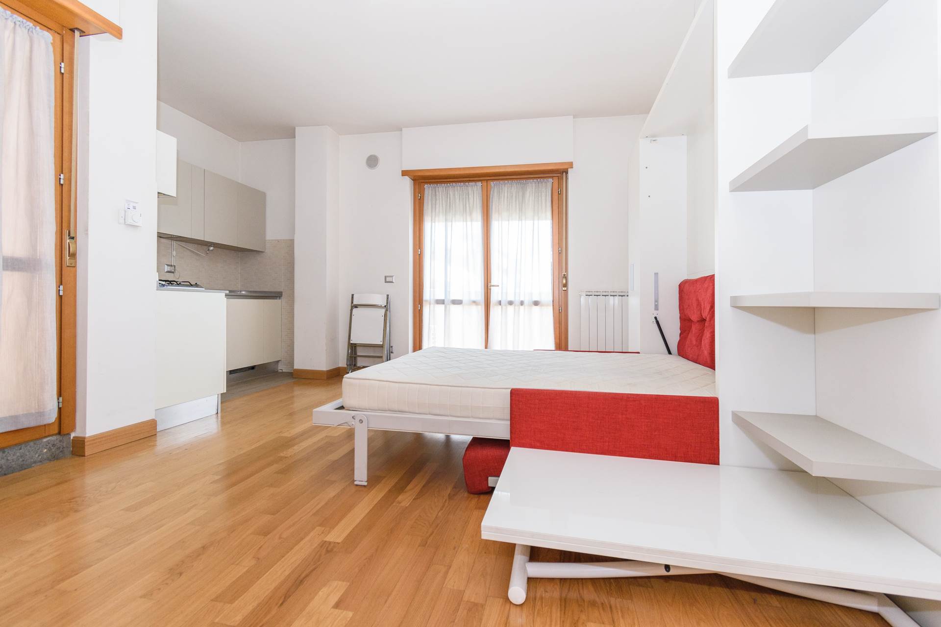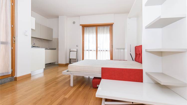 Internamente si presenta open space con angolo cottura e zona giorno/notte, bagno con finestra e vasca, balcone e terrazzo. L'immobile viene venduto arredato.