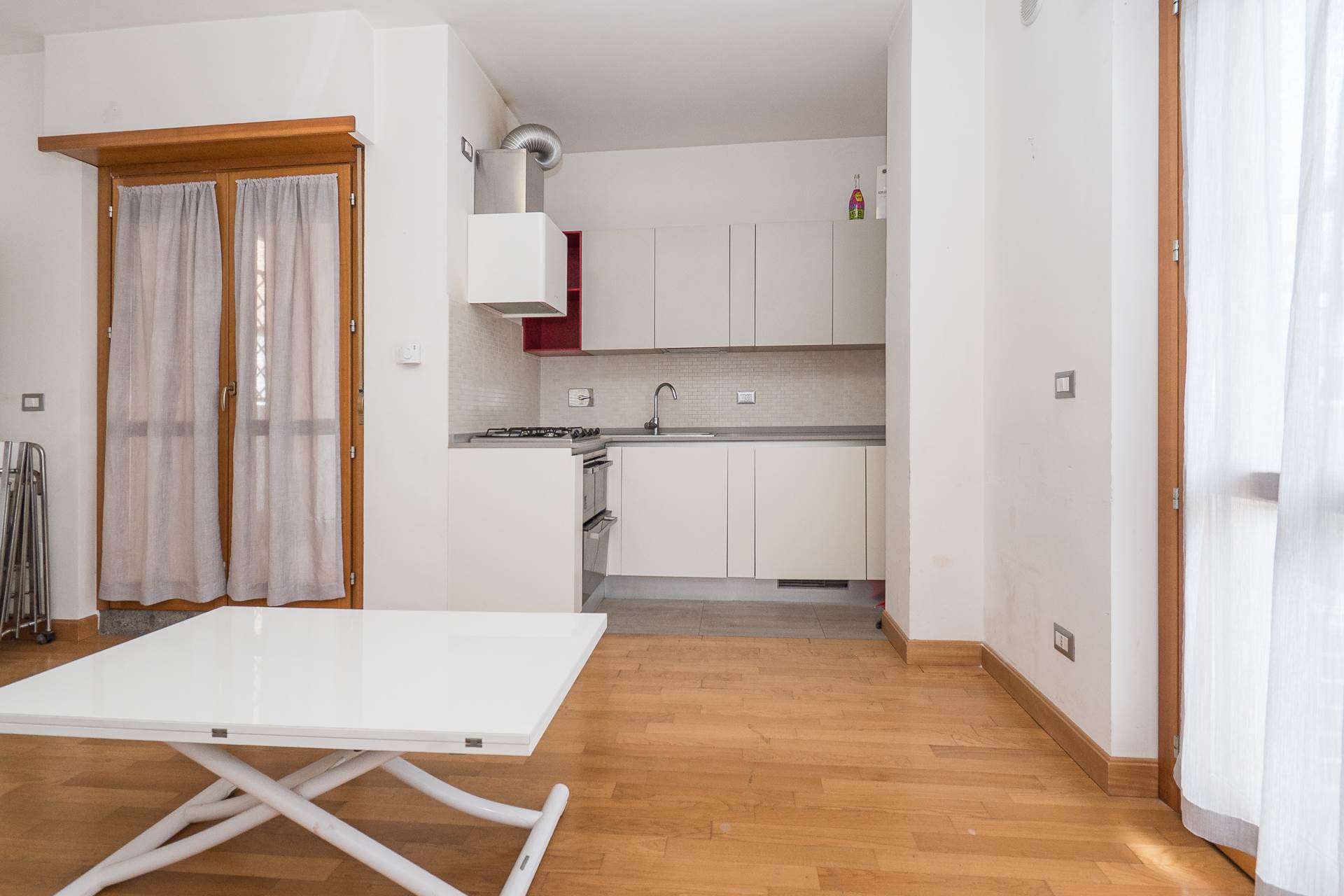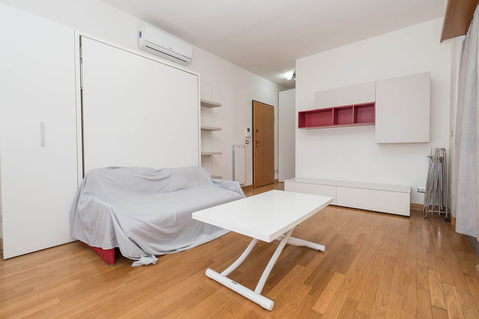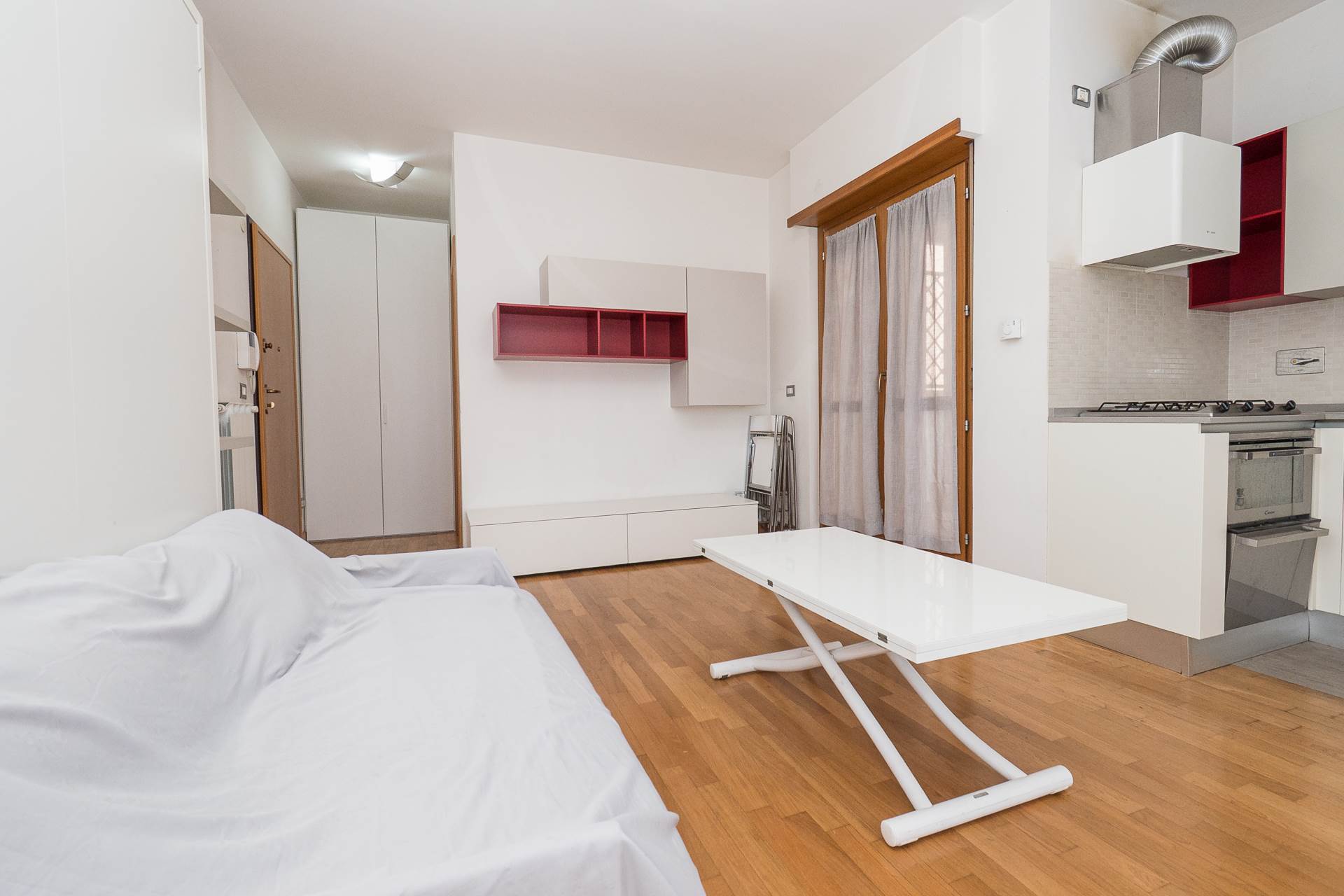 Internamente si presenta open space con angolo cottura e zona giorno/notte, bagno con finestra e vasca, balcone e terrazzo. L'immobile viene venduto arredato.