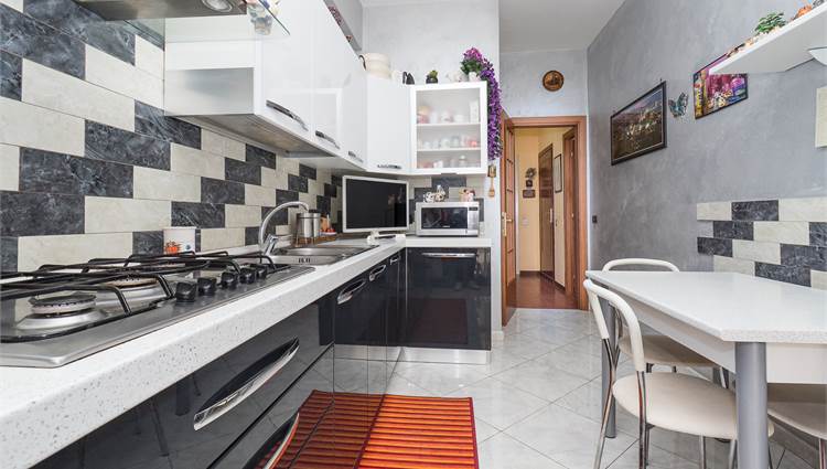 L’appartamento si sviluppa su un ampia metratura: l'ingresso ci porta nella zona giorno composta da un comodo salone e la cucina separata, nella zona notte troviamo due camere matrimoniali, un ripostiglio, bagno finestrato con box doccia e due balconi.