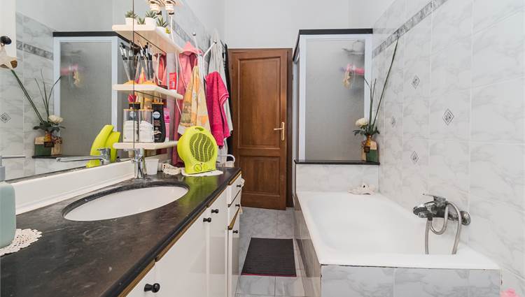 L’appartamento si sviluppa su un ampia metratura, così disposta: spazioso ingresso con armadio a muro, salone, sala da pranzo con cucina annessa, disimpegno con ripostiglio, camera padronale, camera da letto con bagno privato, cameretta e secondo bagno con finestra.
