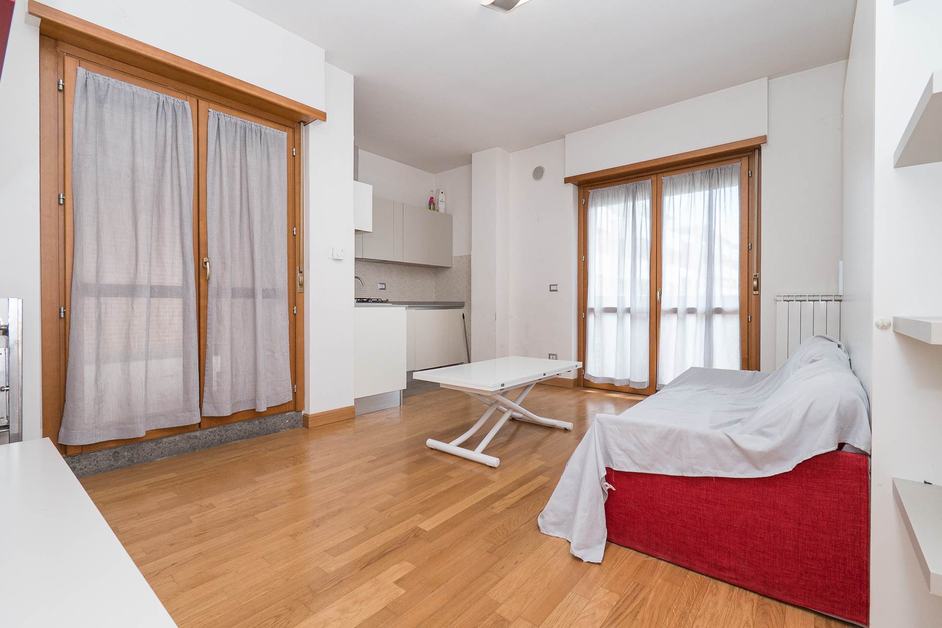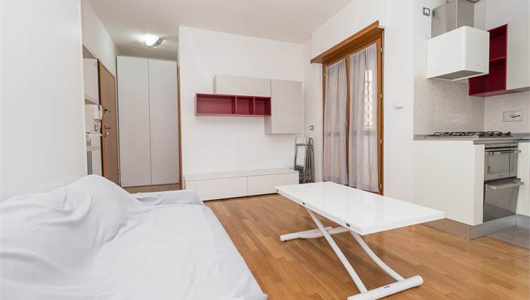 Internamente si presenta open space con angolo cottura e zona giorno/notte, bagno con finestra e vasca, balcone e terrazzo. L'immobile viene venduto arredato.