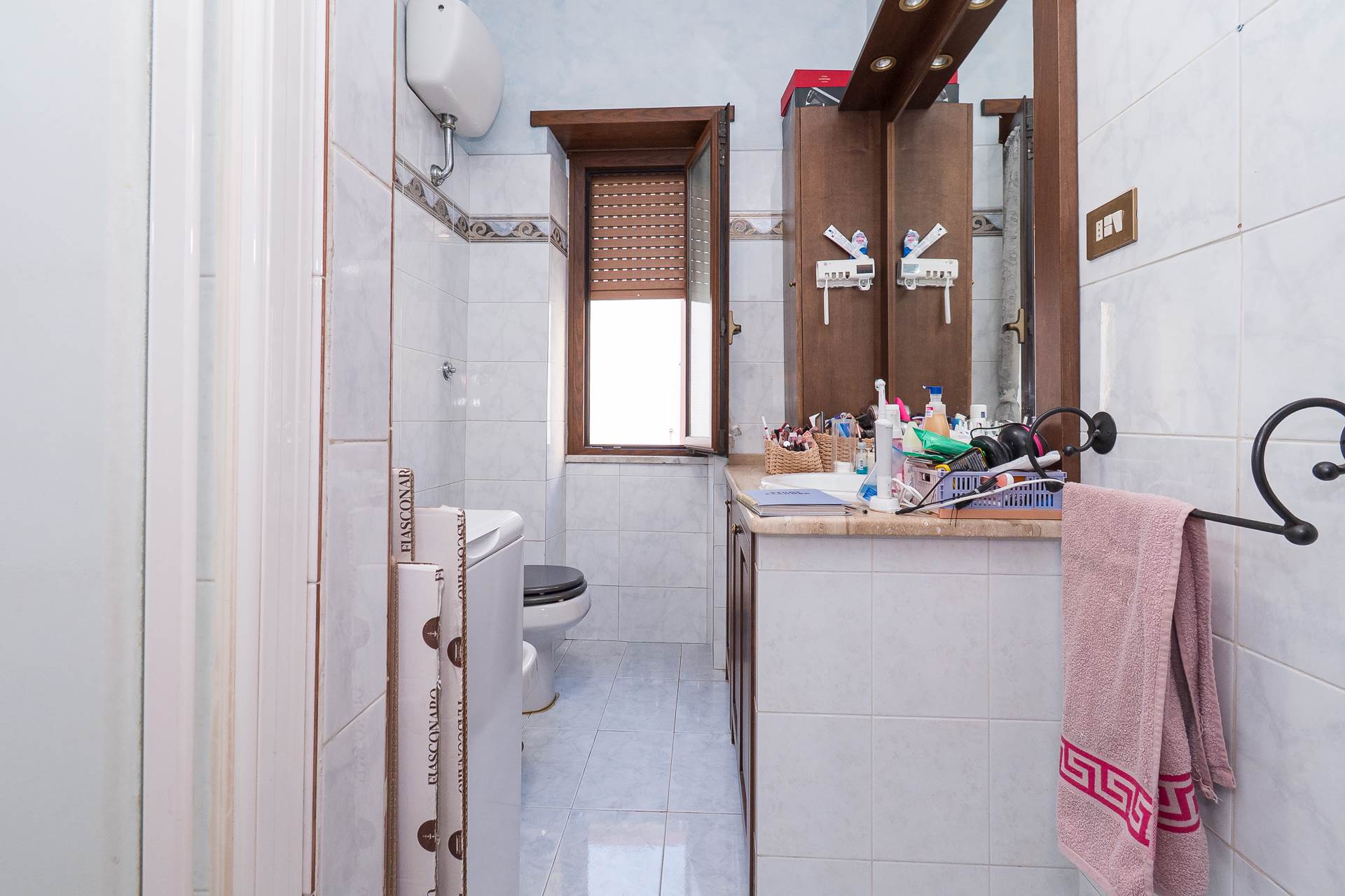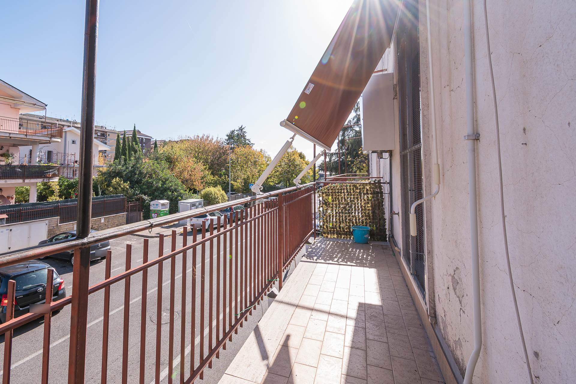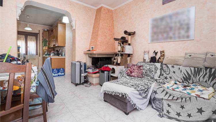 Internamente si compone da salone con camino, cucina, due camere matrimoniali, bagno con finestra ed impianto doccia, balcone e lastrico solare di proprietà di 80 mq.