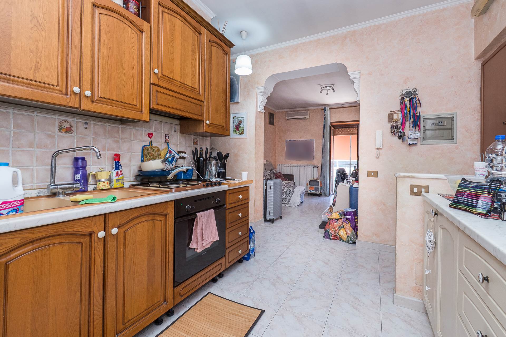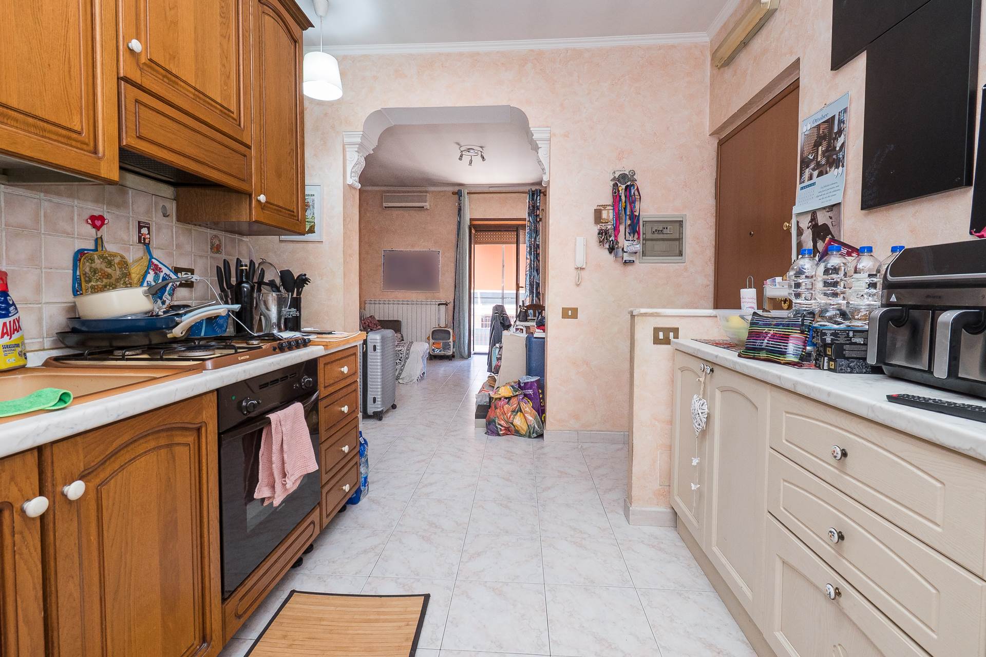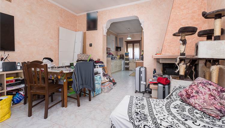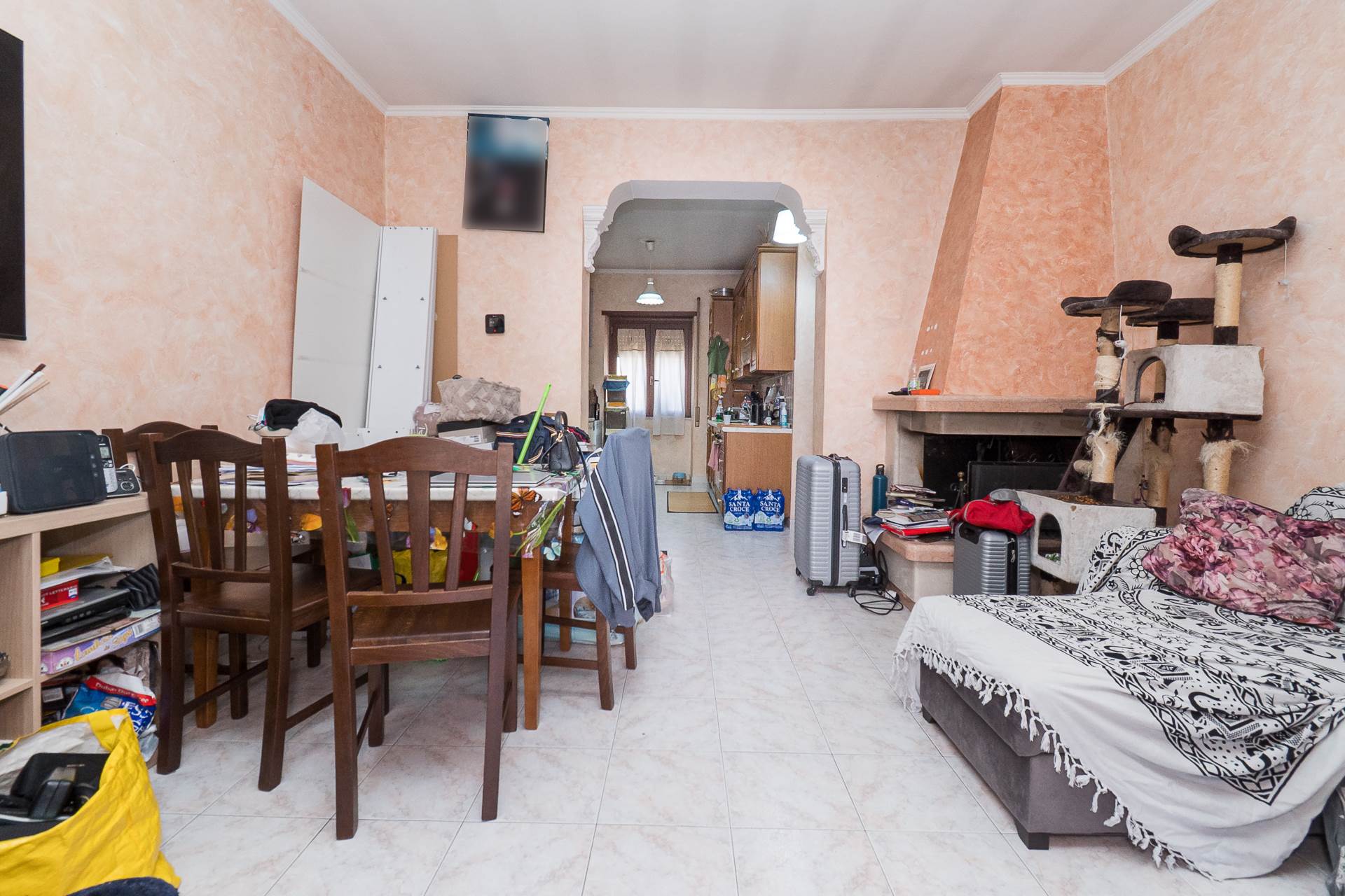 Internamente si compone da salone con camino, cucina, due camere matrimoniali, bagno con finestra ed impianto doccia, balcone e lastrico solare di proprietà di 80 mq.